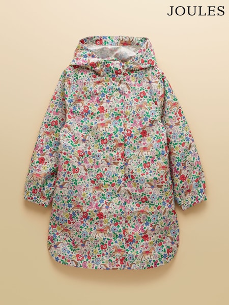 Cream - Joules jenters Rainford vanntett, pakkevennlig regnfrakk med hette