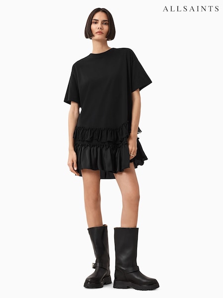 Svart - Friends Like These minikjole med rysjermer og V-hals