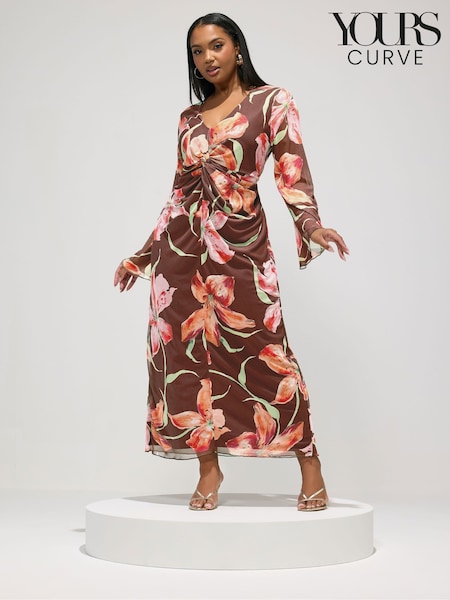 Brun - Jolie Moi Asymmetrisk Drapert Mesh Maxikjole