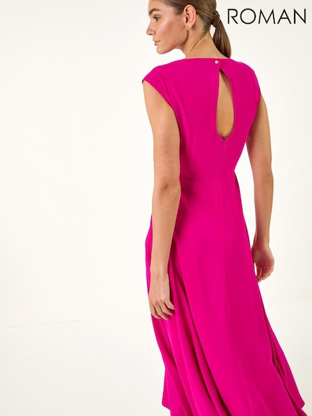 Rosa - Roman Høy hals Plissert Midi Kjole