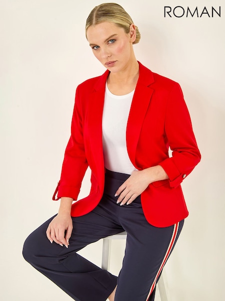 Florere Burgunderfarget Dobbelknappet uten halsbånd Blazer