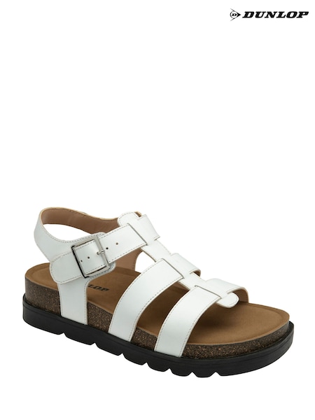 Hvit - Dunlop Stropp Spenne Kile Sandaler