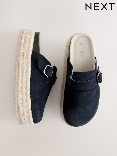 Nøytral - Semskede rund tå espadrilles clog i grovt skinn