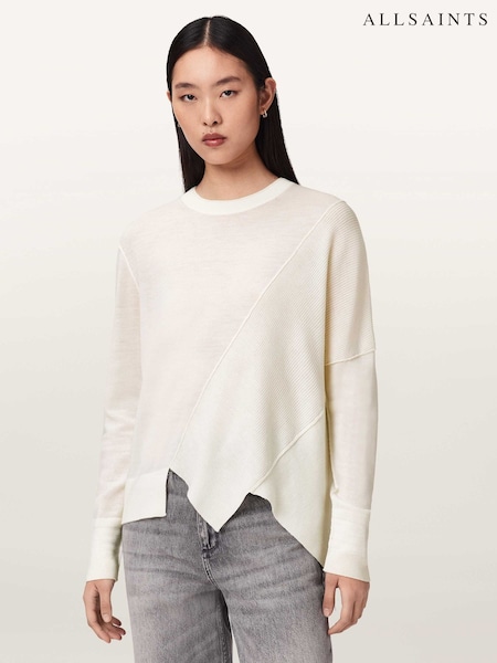 Hvit - Hush Cora avslappet, grov kasjmirgenser med rundhalset