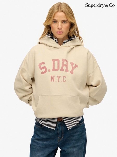 Beige - Superdry Athletic Essentials Relaxed Hettegenser
