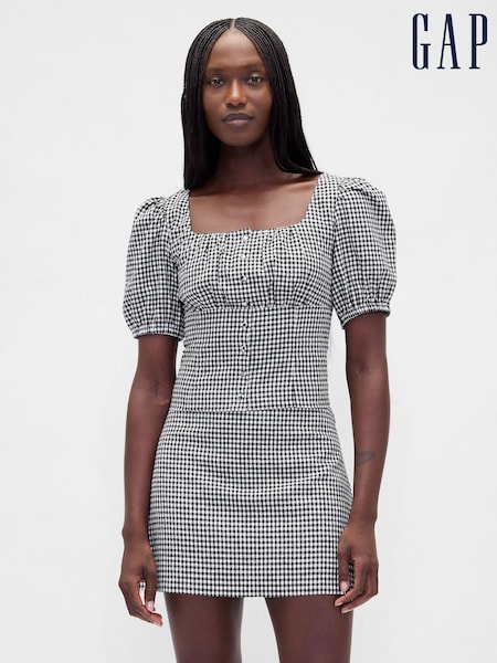 Svart Rutemønster - Gap Linblanding Puffermet Crop Korsett Topp